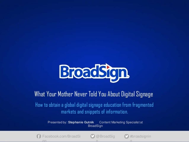 Image source: http://image.slidesharecdn.com/stephaniegutnik-whatyourmothernevertoldyou2014-140428113944-phpapp02/95/what-your-mother-never-told-you-about-digital-signage-1-638.jpg?cb=1398685453